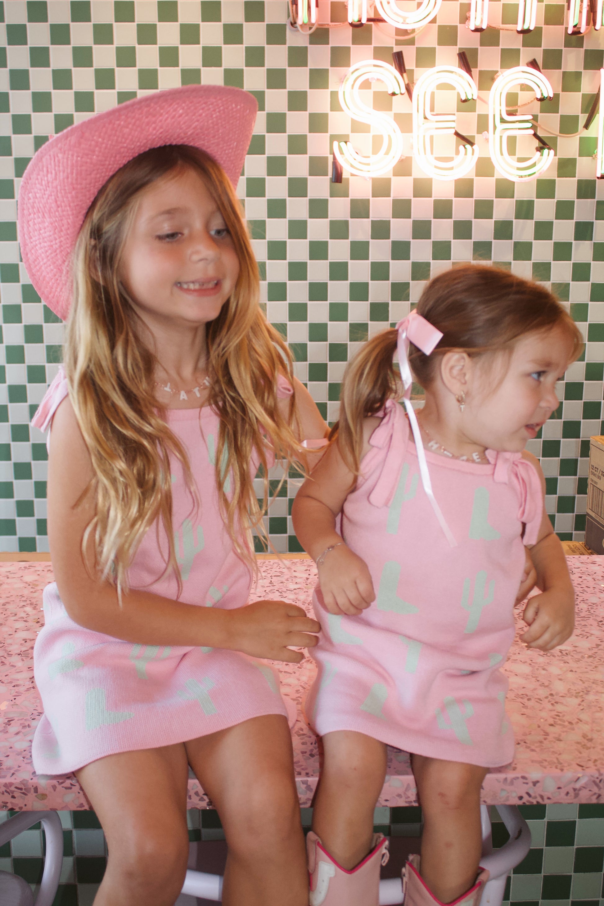 Take a trip to paradise with our Girls Trip knit dress! Made with pink and green knit fabric, this dress is perfect for a Palm Springs inspired look. Get ready to make a statement with this fun and stylish dress that will have your little one standing out from the crowd! Same day ship!